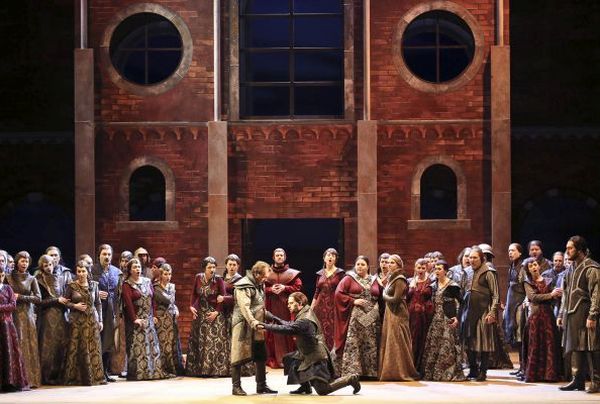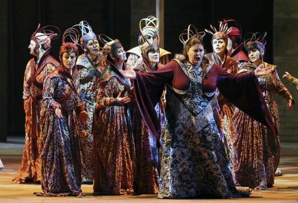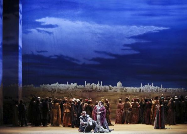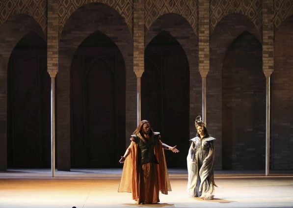Im Teatro Regio wurde das Werk 1843 erstmals gegeben, im selben Jahr der Uraufführung an der Scala, aber seit 1926 (!) nicht mehr. Diese Koproduktion mit Liège/Lüttich füllte also eine bedeutende Lücke und tat dies mit einer Produktion, die für das Auge äußerst erfreulich war. Ich kenne die Arbeiten von Stefano Mazzonis di Pralafera, dem Intendanten und künstlerischen Leiter der Opéra de Wallonie, durch meine Tätigkeit als Übersetzerin von Untertiteln (man verzeihe die private Anmerkung), womit ich schon wusste, dass wir es mit einer konservativen Inszenierung zu tun haben würden. Auch hier wurde man nicht enttäuscht, denn das Bühnenbild von Jean-Guy Lecat hatte sehr viel Atmosphäre, ließ sich aber auch leicht von einer Mailänder Piazza in den Hof eines Harems verwandeln. Eine Augenweide waren die Kostüme von Fernand Ruiz; nur ein paar seltsame Kopfbedeckungen wirkten etwas bizarr. Geregelte Auf- und Abtritte von Chor und Solisten machten Freude, wobei nur ein gar sehr rhythmisches Speerschütteln im Anblick des Feindes übertrieben war. Im Ganzen handelte es sich aber um eine ästhetisch besonders erfreuliche Produktion, und man war dankbar, dass angesichts der Lage im Vorderen Orient eine „aktuelle“ Auseinandersetzung zwischen Christen und Musulmanen (also dem Islam) vermieden wurde.