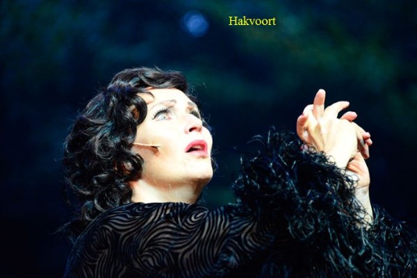 „Sunset Boulevard“ steht etwas im Schatten anderer Werke von Lloyd Webber, nicht zuletzt weil musikalisch wirklich zündende Songs eher sparsam eingestreut sind und die Eingangszenen mit dem retrospektiven Sprechgesang viel zu lang sind. Gleichwohl bietet es eine Story, die stimmig und berührend ist. Aber das Werk steht und fällt eben doch mit der Besetzung der Norma Desmond. Den Tecklenburger Freilichtspielen, die in diesem Jahr ihr 90jähriges Bestehen feiern können, ist da mit Maya Hakvoort ein fulminanter Glücksgriff gelungen. Sie beherrscht mit autoritärer Ausstrahlung jederzeit die Szene, ihre dunkel eingefärbte Stimme wird mit glutvoller Expressivität und sattem Volumen geführt. Die Arie „Nur ein Blick“ ist eine bejubelte Offenbarung. Und wenn sie mit „Träume aus Licht“ ihre glorreiche Vergangenheit beschwört, schleichen sich schon Anzeichen eines Realitätsverlusts ein. Den fortschreitenden Wahn der alternden Diva führt sie äußerst überzeugend vor. Und wenn sie sich nach dem Mord in ihr Salome-Kostüm stürzt und sich inmitten von Filmaufnahmen wähnt, kann die Szene schon wohlige Gruselschauer erzeugen.