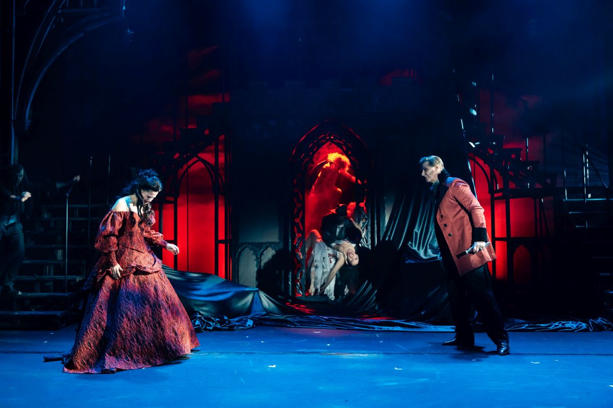 Obwohl das Musical bereits im Oktober 2001 in den USA uraufgeführt wurde und am 23. April 2005 seine deutschsprachige Erstaufführung im Theater St. Gallen feierte, blieb Dracula viele Jahre eher wenig beachtet. Dies liegt möglicherweise auch am etwas fragwürdigen Frauenbild im Stück. Während Mina Murray die treue und häusliche Ehefrau der viktorianischen Zeit verkörpert, ist ihre Freundin Lucy Westenra sehr freizügig und kokett. Gemeinsam ist den beiden, dass sie sich ungemein zum Grafen hingezogen fühlen und sich diesem später auch voller Leidenschaft hingeben. Hier sind die Rollen zwischen Mann und Frau also klar verteilt. Zwar war das Musical immer wieder zu sehen – oft als Open-Air-Produktion –, dennoch wurde dem Werk erst durch eine hervorragende Produktion des Ulmer Theaters auf der Wilhelmsburg im Juni 2021 wieder größere Aufmerksamkeit zuteil. Nach vielen Monaten der Corona-Pandemie war seinerzeit endlich wieder großes Theater möglich, wozu sich dieses Stück durch seine musikalische Stärke besonders eignete. In Dracula jagt ein Ohrwurm wahrlich den nächsten, die zudem allesamt treffend ins Deutsche übertragen wurden. Ob Whitby Bay, Für immer jung, Blut, Das Lied vom Meister, Ich bin da weil du mich liebst, Nosferatu, Ein Leben mehr, Lass mich dich nicht lieben, Roseanne, Wär‘ ich der Wind, Zu Ende, Eh du verloren bist, Frost an einem Sommertag oder Je länger ich lebe – allesamt große Wildhorn-Meisterwerke, die hier erklingen. Musikalisch werden die Lieder von einer achtköpfigen Liveband dargeboten, die in der besuchten Vorstellung von Antonia Kessler punktgenau geleitet wurde. Da das Werk sehr rocklastig ist, ist diese Besetzung auch an den meisten stellen durchaus ausreichend. Auch die großen Balladen und die stellenweise fast hymnisch ausschweifenden Stücke werden von den Musikern treffend umgesetzt.