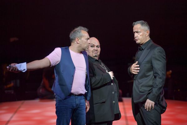 Allein musikalisch betrachtet ist „Jesus Christ Superstar“ ein Musical, welches scheinbar mit jedem Besuch besser wird, natürlich immer vorausgesetzt die Umsetzung stimmt. In Duisburg zeichnen sich hierfür 12 Mitglieder der Kölner Symphoniker verantwortlich, die unter der musikalischen Leitung von Inga Hilsberg einen durchaus respektablen Klang entwickelten. Naturgemäß muss man bei der in Duisburg gewählten Rockband-Version im Vergleich zur großen Orchesterversion einige Abstriche hinnehmen, da einiges eben doch stark nach Synthesizer klingt. So klang auch bei der Premiere die Ouvertüre noch etwas sehr schwach, was aber vielleicht zum Teil auch der Soundabmischung geschuldet war. Im Verlaufe des weiteren Abends gab es hier sonst auch nicht viel mehr zu bemängeln. Ein großer Wurf gelang dem Theater bei der Besetzung der Hauptrollen. In der Rolle des Jesus zeigt Patrick Stanke, warum er zu populärsten Musicaldarstellern im deutschsprachigen Raum zählt. Selbst beim schwierigen „Gethsemane“ sitzt jeder Ton perfekt. Im gegenüber gibt auch Andrea Matthias Pagani als Judas ein glänzendes Bild ab. Konnte er erst vor kurzem noch als Tito Merelli in „Otello darf nicht platzen“ im Theater Mönchengladbach vollkommen überzeugen und neben dem Gesang sein komödiantisches Talent zeigen, so ist die Rolle des Judas doch komplett anders angelegt.