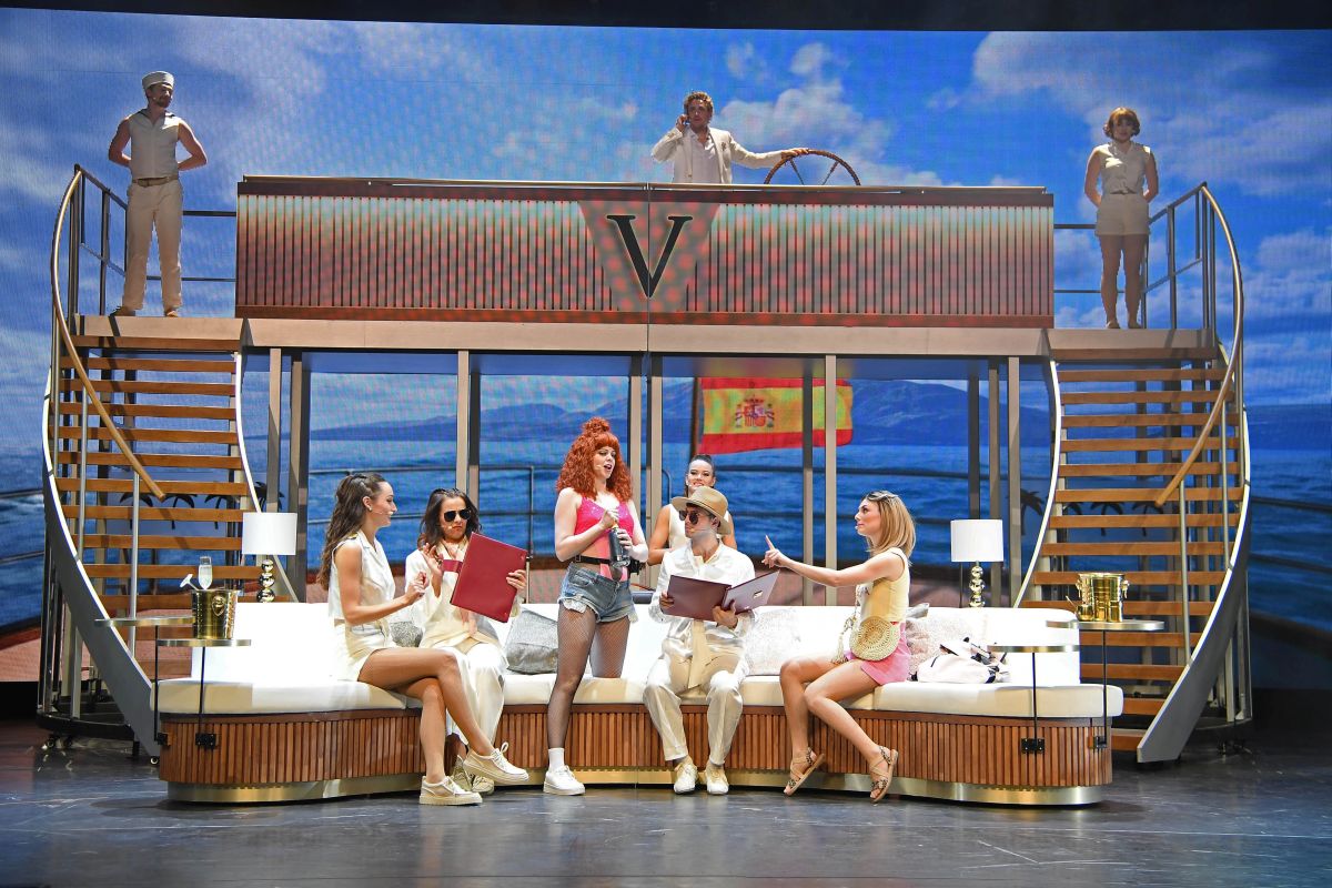 Dass Erik Petersen aus dieser Vorlage eine durchaus gelungene Inszenierung macht, ist sicherlich auch seiner großen Erfahrung im Bereich der Musicalregie geschuldet. Die Übergänge sind fließend und alle Personen werden gut dargestellt. Dazu gibt es einige nette Regieeinfälle, wie die Ansagen zu Beginn am Flughafen von Palma de Mallorca, die in der Tat sehr witzig sind. Dass der Abend kein totales Desaster wird, ist vor allem den wunderbaren Choreografien von Sabine Arthold und dem hervorragenden Ensemble zu verdanken. Die Darstellerinnen und Darsteller sind mit vollem Einsatz dabei und führen die großen Choreografien absolut synchron aus. Auch das Bühnenbild von Isabella Reicheneder weiß zu gefallen. Die hochauflösenden LED-Projektionen auf einer großen und vier kleineren Wänden ergeben zusammen mit einigen verschiebbaren Requisiten einen optisch sehr stimmigen Gesamteindruck. Die Kostüme von Mara Lena Schönborn sind ebenfalls gut auf die jeweiligen Rollen abgestimmt.