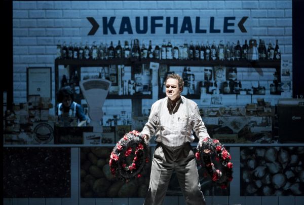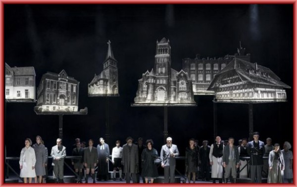 Aber der Erfolg des Abends geht auch auf das Konto von Keith Warner, denn ihm ist in Union mit seinem Ausstatter David Fielding eine wirklich hoch intelligente Inszenierung gelungen, wie man sie nicht alle Tage sieht. Sie half auch dem zweiten Teil des Abends, der etwas an Spannung verliert und gelegentlich durchhängt, über die Runden – bis zum großen Erfolg (und mit dem Buh-Rufer, der offenbar den Regisseur meinte, würde man gerne diskutieren, was er hier einzuwenden hatte). Wenn man zuerst nach Güllen kommt, kreieren Warner und Fielding eine graue, stumpfe Welt – wenige Versatzstücke, viele gemalte Hintergründe, die in Form von alten Postkarten herabgesenkt werden, ein Mini-Eisenbahnzug, die Menschen im Look der fünfziger Jahre. Güllen hat sich aufgegeben.
