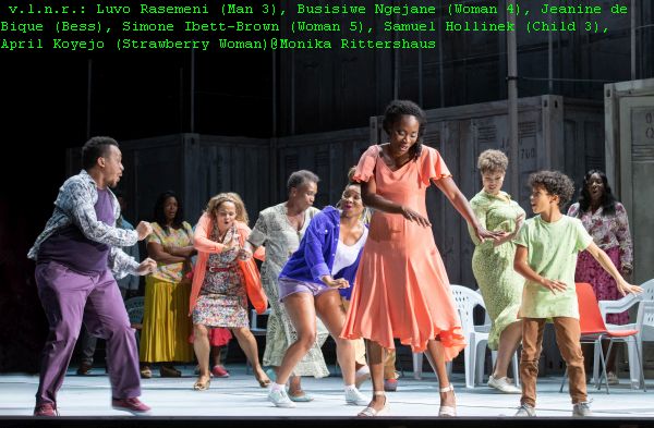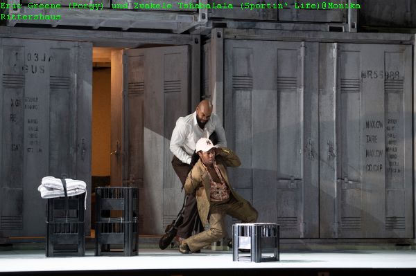 Der afrobritische Dirigent Wayne Marshall am Pult des um jazzerfahrene Musiker erweiterten Wiener KammerOrchesters verzichtete auf all zu viel Sentimentalität bei den „Hits“ wie „Summertime“, „I Loves You, Porgy“, „I Got Plenty o’ Nothin’“ und „It Ain’t Necessarily“ und präsentierte einen lautstarken eher harten Gershwin-Sound. Die Sänger der Hauptrollen verfügten allesamt über voluminöse durchgängig prachtvolle Stimmen. Der verkrüppelte, so der Text, heute würde man wohl körperbehinderte Porgy sagen, wird in dieser Inszenierung äußerlich durch ein in einer Orthese steckendes steifes Bein und einer Krücke gekennzeichnet. Der US-amerikanische Bariton Eric Greene wirkte dabei keineswegs als bemitleidenswerter „Krüppel“, sondern als resoluter, stolzer Mann, der sich zu wehren weiß und darüber hinaus noch stimmgewaltig aufzutreten konnte. Am Ende tötet er Crown ohne dieses Mordes jedoch überführt werden zu können und bricht nach New York auf, um „seine“ Bess zu suchen. Jeanine de Bique als Bess, die von ihrem schurkischen Liebhaber Crown nach dessen Mord an Robbins zurückgelassen wurde, bestach sowohl durch äußerliche Schönheit als auch durch exzellente Stimmführung. Als labiler und seelisch zerrütteter Junkie bleibt sie Crown jedoch sexuell hörig und verlässt schließlich beide Männer nach einer übermäßigen Kokaineinnahme um ihr Glück an der Seite des Drogendealers Sportin’Life in New York zu suchen.