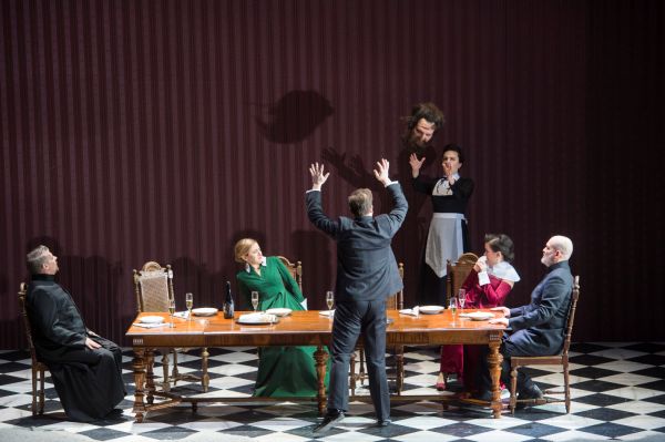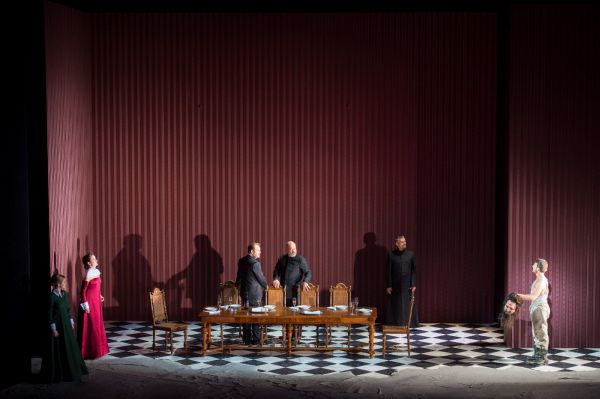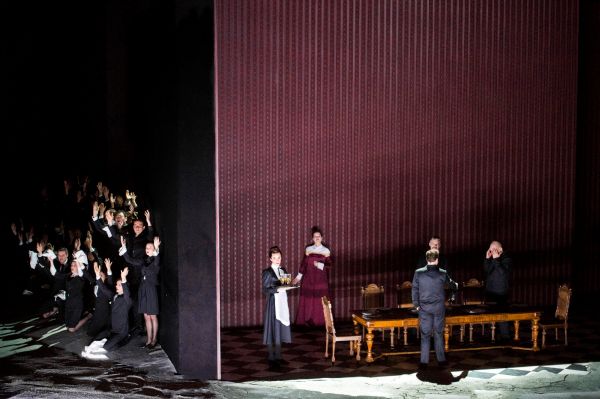 In mehreren Rollen immer nachdrücklich und interessant ist der brillante, schneidende Tenor von Marcel Beekman. Quentin Desgeorges hat nur eine kurze, dramatische Szene – und einen besonderen Clou hat sich Claus Guth für „the Witch of Endor“ ausgedacht, zu der König Saul hinabsteigt, um den Teufel zu beschwören (wenn Gott ihn schon im Stich lässt): Denn diese Hexe (Ray Chenez) war als servierendes Stubenmädchen die ganze Zeit im Schloß schon da…