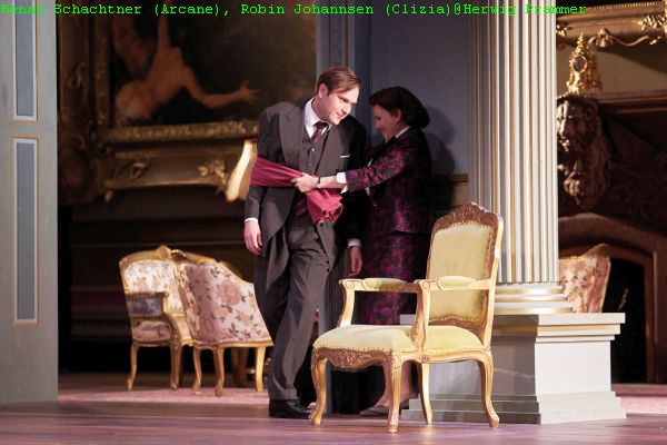 Der in Bayern geborene Benno Schachtner, der zweite Countertenor des Abends, in der Rolle des Arcane, liebt Clizia, gesungen von der US-amerikanischen Sopranistin Robin Johannsen. Sie müssen sich mit ihren ungeliebten Nebenrollen ohne musikalische Höhepunkte zufrieden geben. Die Rolle von Medeas Vertrauter Fedra, interpretiert von der kanadischen Sopranistin Soula Parassidis ist derart winzig, dass man leicht nachvollziehen kann, dass sie von Impresario Owen Swiny (1676-1754), der mit den Eintrittspreisen der ersten beiden Abende in London durchgebrannt war, gestrichen wurde. Der 16 köpfige Arnold Schoenberg Chor unter seinem verdienten Leiter Erwin Ortner agierte besonders spielfreudig und sang auf gewohnt hohem Niveau. Das Publikum schenkte allen Mitwirkenden dieser vorletzten Vorstellung überwältigenden Applaus, der besonders stark für Medea ausfiel, die auch mit Brava-Rufen ausgezeichnet wurde.
