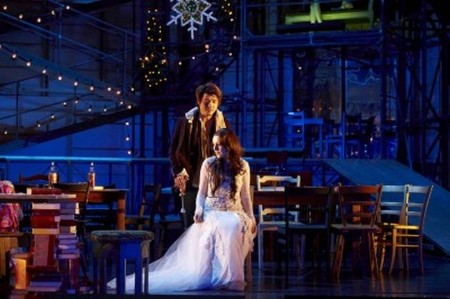 Ein Hochgenuss war es, den Vertretern der Hauptpartien zuzuhören. Von diesen famosen jungen Sängern, auf die das Theater Augsburg stolz sein kann, hat jede(r) das Zeug zu einer großen Karriere. Nachdem sie neulich bereits als Donna Anna einen guten Eindruck hinterließ, vermochte Gastsängerin Natalie Karl, die man noch aus Stuttgart in guter Erinnerung hat, an diesem Abend noch stärker für sich einzunehmen. Mit hervorragender italienischer Technik, wunderbarer Linienführung und beseeltem Ausdruck zeichnete sie ein sehr berührendes, emotionales Rollenportrait der Mimi, der sie auch darstellerisch ein anrührendes Profil gab. Ebenfalls Gast war Joel Montero, der für den Rodolfo eine gute Wahl war. Mit angenehmem, rundem und farbenreichem lyrischem Tenor, den er nuancenreich und mit großem Schmelz einzusetzen wusste, entsprach er dem Dichter voll und ganz. An das hohe vokale Niveau des Liebespaares vermochte Seung-Gi Jungs sonor und obertonreich singender Marcello problemlos anzuknüpfen. In puncto Ausdrucksintensität war er Montero sogar überlegen. Als ideale Musetta erwies sich Cathrin Lange. Trefflich war schon ihr aufgewecktes, kokettes Spiel. Und was sie mit ihrem wunderbar italienisch geschulten, klangvollen und flexiblen Sopran stimmlich bot, legt den Schluss nach, dass hier eine vorzügliche Mimi nachwächst. Giulio Alvise Caselli gab mit bestens sitzendem hellem Bariton einen guten Schaunard und Vladislav Solodyagin überzeugte als profund intonierender Colline. Greg Ryerson legte den Benoit stimmlich zu karikativ an. Da schnitt Eckehard Gerboth als Alcindoro und Sergeant schon besser ab. Sehr dünnstimmig präsentierte sich der Parpignol von Gabor Molnar. André Wölkners Zöllner rundete das homogene Ensemble ab. Der von Katsiaryna Ihnatsyeva-Cadek einstudierte Chor und Kinderchor hinterließ einen gefälligen Eindruck.