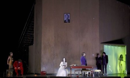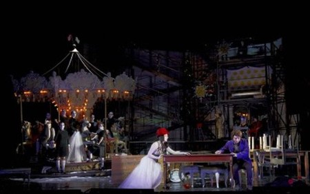 Ein Volltreffer war bereits die Inszenierung, mit der das eher konventionell ausgerichtete Theater Augsburg in die Sphären von modernem, spannendem Musiktheater vordrang – ein szenischer Kurs, der auch für die Zukunft sehr wünschenswert wäre. Regisseur Thorleifur Örn Arnarsson, dessen geniale, ungewöhnliche „Fledermaus“ in der letzten Spielzeit die Augsburger Gemüter ganz schön erhitzt hatte, hat das Stück hervorragend durchdacht und mit seiner auch technisch versierten Umsetzung den neugierigen Intellekt voll und ganz befriedigt. Weit entfernt von jeder traditionellen, oberflächlichen Süßlichkeit und kitschiger Herzschmerzromantik rückt er das Ganze gekonnt auf eine überzeugende geistig-innovative Ebene. Es sind ihn erster Linie die psychologischen und sozialkritischen Aspekte der Handlung, die ihn interessieren und die er in Zusammenarbeit mit Jósef Halldórsson (Bühnenbild) und Filippia Elísdóttir (Kostüme) einer tiefschürfenden Beleuchtung unterzieht. Es ist ein gelungener Spagat zwischen innerer und äußerer Handlung, die Arnarsson hier vorführt, wobei er das Geschehen immer mehr ins Surreale abdriften lässt. Zunehmend verschmelzen Realität und Imagination miteinander. Grotesk anmutenden Elementen, die im Gesamtgefüge der Inszenierung durchaus logisch platziert sind, wird Tür und Tor geöffnet. Dabei ist der Regisseur nicht auf Provokation bedacht, sondern auf eine Interpretation von innen heraus. Ihm ist das Kunststück gelungen, das Werk zu modernisieren und seine Aussage dabei auf eindringliche Art und Weise zu intensivieren. Das Ergebnis ist sehr stimmiger Natur.