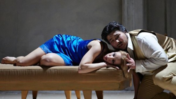 Die femme fragile Mélisande passt nicht in das System. Sie ist und bleibt eine Außenstehende. Und genau dieser Aspekt ist es, der sie sich schließlich ihrem Schwager und Leidensgenossen Pelléas zuwenden lässt. Sie weiß, was sie will, und hat nicht die Absicht, sich dem familiären Joch unterzuordnen. Dem sie einengenden gesellschaftlichen Zwang begegnet Mélisande mit trotziger, unablässiger Selbstbehauptung. Sie will sich partout nicht in die familiäre Zwangsjacke stecken lassen und geht nachhaltig auf Konfrontationskurs. Als Sinnbild ihres Widerstandes fungiert das blaue Kleid, das sie bis zuletzt trägt. Hier bringt Yona Kim auf treffliche Art und Weise die Emanzipation der Frau mit ins Spiel, die ja ebenfalls um die Wende vom 19. zum 20. Jahrhundert ihren Anfang nahm – noch ein Regieaspekt, der ganz aus der Zeit Debussys heraus begründet ist und großen Sinn macht, auch wenn die Königsfamilie dieses aufmüpfige Verhalten Mélisandes natürlich alles andere als positiv beurteilt. Da prallen oftmals Perspektiven, die sich nicht miteinander vereinbaren lasen, mit großer Rasanz aufeinander. Es sind aber gerade die verschiedenen Ebenen der Wahrnehmung, aus denen die Inszenierung rein visuell ihren großen Reiz zieht. Immer wieder verschmelzen Wirklichkeit und Traum miteinander. Wenn sich der Raum immer wieder nach hinten hin öffnet und erweitert, tut sich eine zweite, den Köpfen der beteiligten Personen entspringende surreale Handlungsebene auf, die das genaue Gegenteil der Realität ist. In diesem neu entstandenen Psychoraum offenbaren sich in oft von Doubles ausgeführten Parallelhandlungen die geheimsten Wünsche und Sehnsüchte der Protagonisten. Teilweise mimen aber auch die Sänger mehrere Gestalten. So gibt es beispielsweise eine innere, echoartig aus dem Off ertönende Stimme Mèlisandes, die sich aber auch durch den Mund von Yniold artikuliert. Desweiteren träumt sich Arkel einmal in die kleine Rolle des Schäfers. Die verschlungenen seelischen Irrwege werden durch diese Vorgehensweise der Regisseurin gut versinnbildlicht. Die Sehnsucht der Liebenden nach einem anderen, besseren Leben, wird offenkundig. Der Weg dahin wird aber nicht gewiesen. Dem entspricht es, dass Frau Kim der hier an den Tag gelegten Gratwanderung zwischen Traum und Wachen ganz im Einklang mit den Intentionen Debussys ihren symbolhaften Charakter belässt. Insgesamt geht es bei ihr wenig eindeutig zu. Vielmehr kommt es ihr auf die Eröffnung weiter Assoziationsfelder an, die dem Zuschauer Raum für eine eigene Auslegung des Gesehenen lassen. Dieses Konzept ist voll aufgegangen und stellt einen wesentlichen Beitrag zur Rezeptionsgeschichte des Werkes dar.