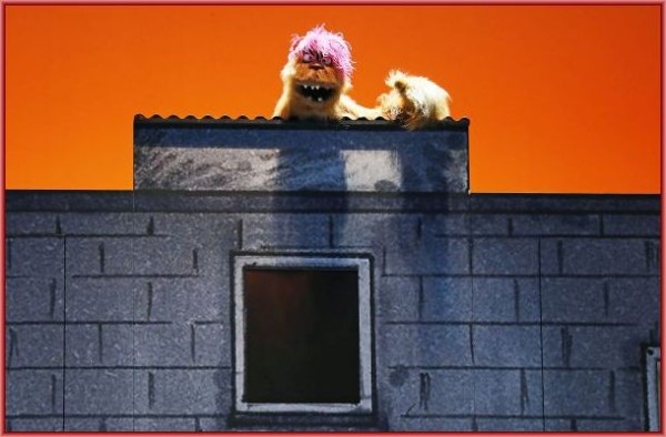 Die Regie von Nick Westbrock orientiert sich in erster Linie an einer möglichst authentischen Umsetzung typischer Sesamstraßen-Elemente, was hier sehr gut gelingt. Wunderbar wie Menschen und Puppen hier verschmelzen und wie der Zuschauer schnell in die ganz eigene Welt der „Avenue Q“ eintaucht. Aber auch eine kleine Anspielung an Wickie wird der Zuschauer in der Inszenierung finden können. Die Bühne von Udo Herbster, der sich auch für die Kostüme verantwortlich zeichnet, besteht aus einem großen Wohnhaus, in dem sich einige Zimmer nach außen aufklappen lassen. Die Gesamtoptik orientiert sich auch hier am bekannten Vorbild. Dazu gibt es eine kleine Videowand, die in einigen wenigen Szenen geschickt eingesetzt wird. Besonders schön, wenn dem Zuschauer hier durch einen Einspieler erklärt wird, was die „Bestimmung“ ist.