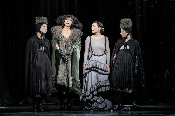 Stimmlich beeindrucken kann mich vor allem die Ježibaba von Joanna Motulewicz. Die junge Sängerin ist in ihrer Mischung als Cruella de Vil und Morticia Addams, als die Otto und Spreckelmeyer sie zeigen, nicht nur eine Augenweide. Sie verfügt über einen farbenreichen, dämonischen Mezzo voll obskurer Tiefe und eine umwerfende Bühnenpräsenz und verkörpert glühende Leidenschaft. Als Prinz hätte ich sofort SIE gewählt. Der hält sich aber ans Skript und schwankt zwischen den beiden Ensemblemitgliedern Katja Starke als stimmgewaltiger Fürsten und Dušica Bijelić als kühler Rusalka. Die Serbin ist mir aber als halbmenschliches Wesen zu energisch und stimmlich überhaupt nicht zerbrechlich, wäre sicher eine exzellente Elsa, ist mir aber hier über weite Strecken zu wenig zart. Dabei spielt sie ganz hervorragend und arbeitet physisch die Zerrissenheit ihrer Figur ganz wunderbar heraus. Die immer wieder mahnenden Worte ihres Vaters, des Wassermannes, kommen in meiner Vorstellung wiederum weitaus unerbitterlicher und wuchtiger über den Graben als das, was Moon Soo Park zeigt. Dafür gefällt mir Michael Siemon als Prinz ausgesprochen gut, zeigt strahlende, kraftvolle Höhen und immensen Ausdruck. Zwar klingt er sehr nach „deutschem Fach“, das mag aber auch daran liegen, dass man in Bielefeld auf Deutsch (und übertitelt) singt. Cornelie Isenbürger und Frank Dolphin Wong geben ein hinreißendes Gespann aus Küchenmädchen und Förster und komplettieren so die Solistenriege.