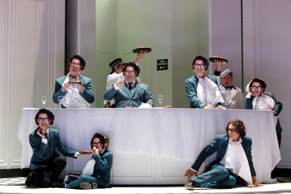 Eher kontraproduktiv für das Inszenierungskonzept wirkt sich die vierfache Hotellobby auf der Drehbühne von Ulrich Leitner aus. Warum spielt diese Produktion in einem Hotel ohne jedes Venedig-Ambiente, wenn Aschenbach sowieso nur in seine Psyche eintaucht? Schlüssiger wäre es gewesen, wenn das Stück in Aschenbachs Arbeitszimmer verlegt worden wäre, in dem dann Gemälde oder Spiegelbilder hätten lebendig werden können.