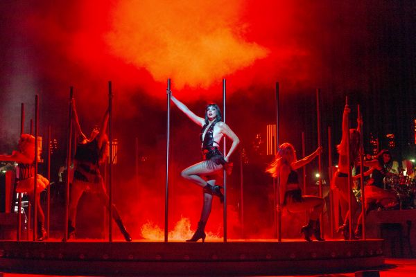 In Zeiten, in denen die BILD in Deutschland einen eigenen Fernsehsender startet, vielleicht ein ganz passendes Musical, welches von Regisseur Gil Mehmert mit schönem Witz umgesetzt wurde. Kleiner Spoileralarm, auch der gute „Uncle Sam“ wird in dieser Inszenierung entlarvt werden. Die Autoren Fred Ebb und Bob Fosse entwickelten das Musical 1975 bereits als eine Abfolge von Varieté-Nummern, einen Aspekt den Mehmert in seiner Regie besonders würdigt und der Geschichte so einen gelungenen Rahmen setzt. Durch diese Inszenierung gelingt es, dass nahezu alle Songs gut zur Geltung kommen und fast wie in einem Varieté-Programm ein Highlight das nächste jagt. Die Bühne von Jens Kilian ist hierbei dank einer zentralen Drehscheibe zweckdienlich und mit einer großen Showtreppe zudem nett anzusehen. Vorteil hierbei auch, dass der Abend ohne größere Umbauten flüssig abläuft. Nett anzusehen sind auch die vielen prächtigen Kostüme von Falk Bauer und die wunderbaren Choreografien von Jonathan Huor.