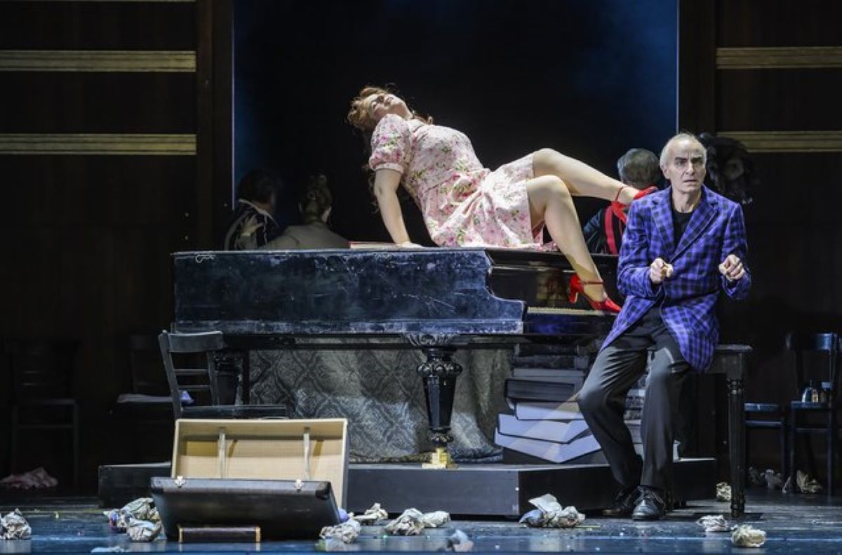 Bühnenbildner Nikolaus Weber hat einen Raum entworfen, der sich schnell vom Nachtclub, Hör-und Gerichtsaal verwandeln kann. Eine Gitterwand zeigt, dass wir uns im Gefängnis befinden, und die Privaträume Salvatores erscheinen in Form einer gedruckten Säule und eines Kamins. Regisseurin Kateryna Sokolova, die mit ihrem Essener Rigoletto zum Saisonbeginn schon positiv aufgefallen ist, bringt die Geschichte mit plastischen Charakteren auf die Bühne, wobei ihr besonders die Szenen zwischen Formica und Salvatore gut gelingen.