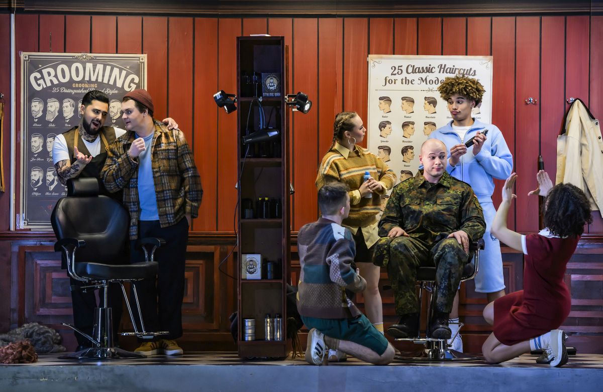Die Inszenierung des Südafrikaners Matthew Wild (im Theater an der Wien für „Porgy and Bess“ gepriesen, im Opernhaus Frankfurt für „Tannhäuser“) entspricht in ihrer fast surrealen Bewegtheit genau dem vom Komponisten vorgegebenen Rhythmus. Das Bühnenbild von Dirk Hofacker zeigt eine Häuserzeile in der Bonner Altstadt mit Apotheke, Barbierladen, Schlüsseldienst und asiatischem Lokal (treffende Kostüme von Raphaela Rose).
