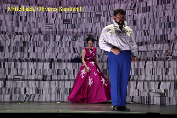 Dann wird (wieder einmal) darauf ein Live-Video projiziert, das zudem völlig unsynchron ist. Marko Lentonja und die Bremer Philharmoniker musizieren diesen Don Carlo durchgängig mit energievoller Spannung, mit großem Atem und viel Sinn für Feinheiten und dynamische Abstufungen. Allein der Orchesterausbruch nach Posas Auseinandersetzung mit Philipp geht tief unter die Haut. Auch die düstere Welt des Großinquisitors spiegelt sich eindrucksvoll im Orchester wider. Der Chor (Alice Meregaglia) zeigt sich ebenfalls von der besten Seite. In der Titelpartie hat Luis Olivares Sandoval viele schöne Momente und kann die Vorzüge seines Tenors gut zur Geltung bringen. Im späteren Verlauf muss man aber angesichts der Länge der Partie kleine Abstriche machen. Ob das eher helle Timbre von Michal Partyka unbedingt für den Posa geeignet ist, bleibt Geschmackssache. Er ist nicht unbedingt ein typischer Verdi-Bariton, verfügt aber über eine sichere Höhe und gestaltet die Partie mit viel Leidenschaft.