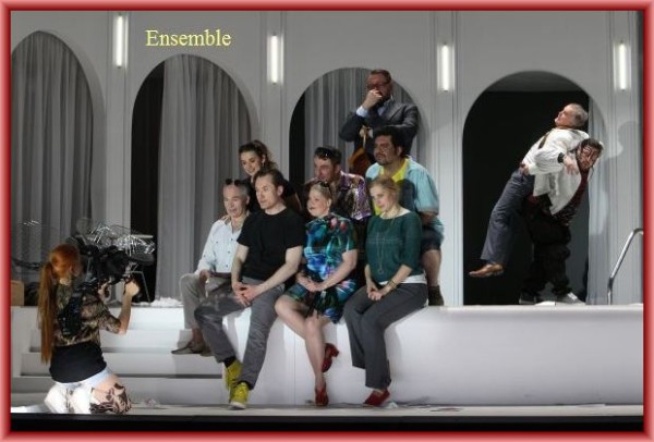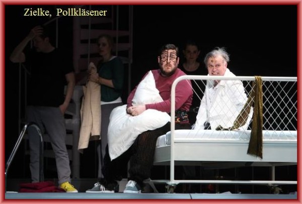 Vom Klang und der Dynamik liegt Keil hier besser als beim „Tabarro“. Seine Wiedergabe hat Tempo und Drive. Mit Patrick Zielke steht ein Vollblutkomödiant als Gianni Schicchi auf der Bühne. Seine lässige und spitzbübische Lesart der Partie kann darstellerisch und stimmlich überzeugen. Nerita Pokvytytè singt als Lauretta die Wunschkonzertarie „O mio babbino caro“ mit der ansprechenden Leichtigkeit, die Luis Olivares Sandoval in der Partie des Rinuccio vielleicht etwas fehlt. Loren Lang ist hier der ehrwürdige Simone. Das insgesamt spielfreudige Ensemble ist in beiden Opern eingesetzt, was ja dem Regiekonzept auch entspricht. Hervorzuheben sind Christian-Andreas Engelhardt (Il Tinca und Gherardo), Nathalie Mittelbach (La Frugola und Ciesca) und Birger Radde (Marco). Begeisterter Beifall für die Sänger, für die Regie gab es auch ein paar Buhrufe.