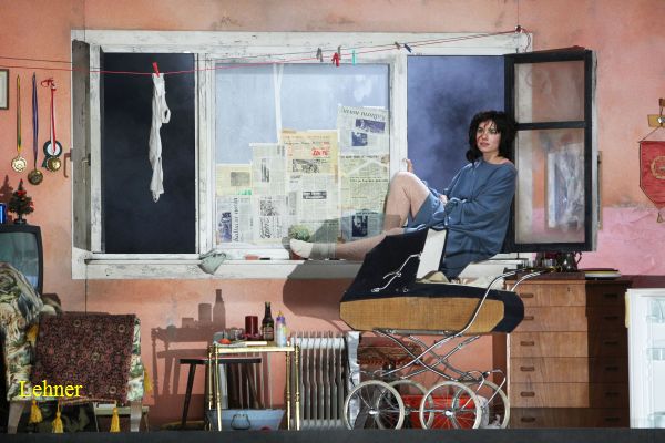 Bühnenbildner Julian Marbach hat für die Mühle, die Wohnräume und den Dorfplatz eine zweistöckige Konstruktion geschaffen, die mittels Drehbühne immer wieder eindrucksvoll variiert wurde. Petras gelingt eine intensive Charakterisierung aller Personen. Nadine Lehner zeigt beklemmend die Entwicklung Jenůfas vom schwärmerischen jungen Mädchen zum traumatisierten Opfer in tiefster Verzweiflung bis zur gereiften Frau, die ihr Schicksal selbst in die Hand nimmt. Ihre stimmlichen und darstellerischen Facetten sind dabei von atemberaubender Vielfalt. Nicht weniger intensiv agiert Ulrike Schneider als Küsterin. In ihrer großen Szene im 2. Akt zeigt sie, dass diese Küsterin nicht nur die eiskalt kalkulierende Despotin ist, sondern auch mit Verzweiflung und Gewissensqualen kämpft. In diesem Akt haben die Videos eine sehr sinnvolle Funktion, weil sie die Gefühle der Küsterin und das Elend von Jenůfa in Nahaufnahmen noch verdeutlichen und verstärken. Hier zeigt sich die Inszenierung von ihrer stärksten Seite. Überflüssig hingegen ist das hinzugefügte Telefongespräch von Števas neuer Verlobter (Marie Smolka) vor dem 3. Akt.