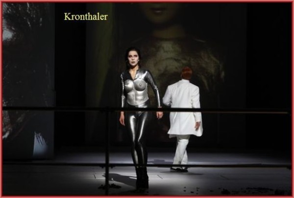 Marguerite im silbernen Latexanzug bewegt sich zunächst wie eine Schwester Olympias als roboterhafte Puppe, die an Blüten abzählend zupft. Ihre Liebe zu Faust und seine zu ihr ist nur imaginär. Beide kommen nicht zusammen, sondern projizieren ihre Gefühle nur auf das Bild des anderen. Eindrucksvoll sind die gelungenen Schattenspiele mit Requisiten wie etwa einem Spinnrad. Aber Dittrich arbeitet auch viel mit Videos und Projektionen, bei denen die Gefahr der Verselbstständigung nicht von der Hand zu weisen ist. Vieles ist arg verrätselt und vielleicht etwas überzogen. Aber immer finden die Brüche in der Musik ihre Entsprechung in der szenischen Umsetzung.