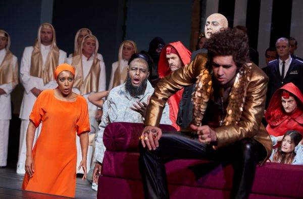 Auch sonst erweist sich die Inszenierung als komplett defizitär. Auf der übervollen Bühne bei der Triumph-Szene bewegt sich fast nichts. Außer dem auf jung getrimmten König (stimmlich gut: Denis Velev), der wie ein tumber Entertainer tänzelnd mit seinem Volk schäkert. Daß bei seinem kaum als sinnstiftend zu denkenden Regierungsstil die Priester unter Ramfis (durchaus hoheitsvoll: Shavleg Armasi) das Sagen haben, kann nicht verwundern.