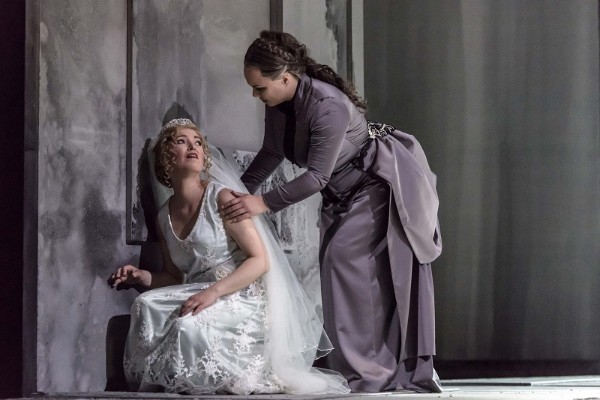 Weitgehend eigene Kräfte bietet man in Erfurt auf, um die gesangliche Seite des Abends zu stemmen. Máté Sólyom-Nagy, seit mehr als 15 Jahren im Erfurter Ensemble und seit letztem Jahr Kammersänger, eröffnet den Abend in der Rolle des Kaisers Heinrich VI., gefällt mit eindrucksvollem Bariton, zeigt aber da und dort ein wenig viel Vibrato. Siyabulela Ntlale als König von Frankreich brilliert mit eindrucksvoller Tiefe, enormer Klangschönheit und phantastischer Bühnenpräsenz. Margarethe Fredheim ist seit 2015 am Haus und darf als Irmengard die klangliche Fülle und das große Volumen ihres wunderbaren Soprans voll ausspielen, während Caleb Yoo als Burggraf aus dem Reigen der kleineren Rollen mit imposantem Bass hervorsticht – da hat Hauschef Guy Montavon gut daran getan, dieses Talent ab der kommenden Spielzeit im Ensemble zu verpflichten. Bei der Auswahl der Gäste hat man nicht in allen Fällen ein so glückliches Händchen. Für Heinrich von Braunschweig (also den Sohn Heinrichs des Löwen) braucht es eine Sängerpersönlichkeit mit Heldentenorqualitäten. Die bringt Bernhard Berchtold leider nicht mit. Er müht sich redlich, kämpft aber mit den Höhen und scheint schon am Ende des ersten Aktes konditionell angeschlagen. Zu wenig Strahlkraft besitzt sein an sich klangschöner Tenor, dem aber letztendlich weniger Held guttäte – da fehlt mir doch eine ganz gehörige Prise Lohengrinscher Glanz. Der Amerikaner Todd Wilander singt die Vokale zwar gerade so, wie sie ihm einfallen und nicht unbedingt wie sie in den Worten stehen (glücklicherweise ist ja übertitelt), aber er besitzt genau dieses Strahlen, diesen Glanz und überzeugt so mit virilem Tenor als Philipp. Claudia Sorokina ist mit der Gestaltung der Titelrolle betraut. Ihr kraftvoller Sopran zeigt die Agnes als streitbare Figur, sie singt höhensicher, schwungvoll und überzeugend, doch hätte ich mir da und dort ein wenig mehr Zartheit gewünscht.