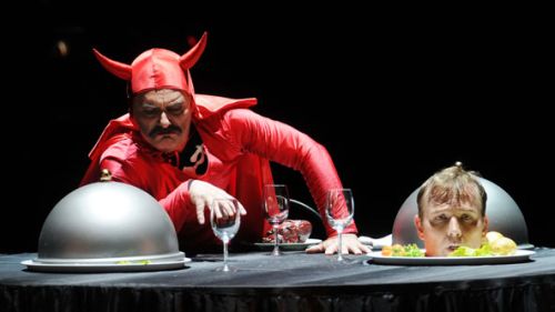 Nicht unerwähnt darf bleiben, dass dieser geniale Schachzug der Regisseurin sich mit der Musik in diesem Akt ganz ausgezeichnet vertragen hat, was sonst bei regiebedingten Modernisierungen eher selten ist. Einen unge- meinen starken Eindruck hinterließ auch die Szene, in der sich der vordem als Priester vorgeführte Vagabund Paisi, dessen Rolle hier mit der des Zauberers Kudma zu einer Partie verbunden wird, seine Maske ablegt und in ein rotes Teufelsgewand schlüpft. Offenbar wird, dass dieser nicht unko- misch auftretende Mephisto es war, der die ganze Zeit über die Fäden des Geschehens in der Hand hielt und als ausgemachter Dämon alle Handlungs- träger planmäßig ins Verderben lenkte. Gleichzeitig wartet Tatjana Gürbaca hier mit einem berechtigten Seitenhieb auf die Katholische Kirche auf, in deren Namen über die Jahrhunderte hinweg immer wieder schreck- liche Verbrechen begangen wurden, man denke nur an die Kreuzzüge und die Inquisition. In böser Absicht stellt der Geist, der stets verneint, Nastasias guten Taten deren Kehrseite gegenüber. Die Quintessenz lautet: Alle Hand- lungen, egal ob gut oder schlecht, fallen irgendwann auf uns selbst zurück. Deshalb sollte man sich sein Tun immer gut überlegen. Das war alles sehr überzeugend und mit hohem technischem Können umgesetzt. Aber dass Tatjana Gürbaca einer der hellsten Sterne am Regiehimmel ist, hat man ja schon lange gewusst. Eine Übernahme dieser überaus gelungenen Produk- tion nach Mainz wäre sehr zu wünschen.