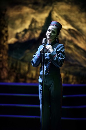 Und der ist obendrein nicht einmal immer gut. Zwar macht Silke Willrett, die für die durch die Bank hinreißenden Kostüme verantwortlich zeichnet, die Titelfigur optisch zu einer Mischung aus Meat Loaf und Bobby Flitter (Sie erinnern sich an das Glitzermännlein aus Michael Schanzes „Flitterabend“?), rein stimmlich allerdings hat Alexander Voigt dessen Volumen nicht, streut zwar durchaus eindrucksvoll klingende Passagen ein, scheint aber mitunter fast überfordert trotz seines an sich kraftvollen Tenors. Katja Bildt singt die Pamela Kookburn wie eine Schlagersängerin, die ab und an ein paar opernhafte Töne beimischt, so dass ihr klangschöner Mezzo nur in den Ensembles herausragend klingt und gefällt. Das gelingt ihrem Bühnengatten Juri Batukov bereits nicht mehr, der nur noch eine Art Sprechgesang präsentiert. Die beiden Kammersänger Jörg Rathmann und Máté Sólyom-Nagy singen zwar vorzüglich, das geht aber im platten Spiel unter, zu dem die Regie sie als Beppo und Giacomo verdonnert hat.