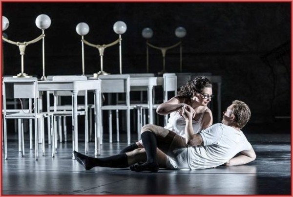 Hausherr und Regisseur Guy Montavon greift in die Zandonai-Oper gleich an mehreren Stellen ein: Er verlegt die Handlung in ein Internat zu Beginn des 20. Jahrhunderts, in dem die Sprösse der verfeindeten Familien aufeinander treffen. Da Romeo und Julia sich allenfalls im Teenageralter befinden, ist das durchaus nachvollziehbar, doch verhalten sich die Protagonisten recht archaisch: Da kommt es zu Übergriffen, die pubertierendes Gefummel bei weitem übersteigen und Romeo und Julia treffen sich jede Nacht in der Bibliothek zu sexuellen Eskapaden, ihr Liebesschwur endet im Schluss eine Blutsgeschwisterschaft.