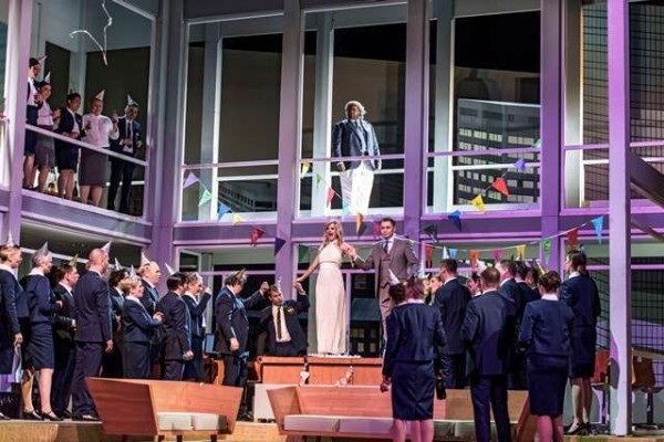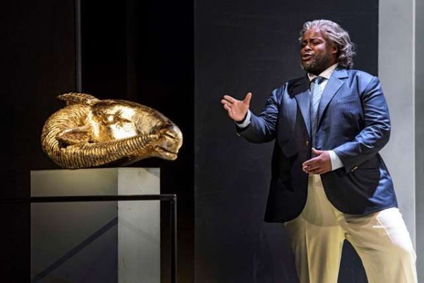 Hauschef Guy Montavon persönlich hat sich des antiken Dramas angenommen und es so gekonnt wie schlüssig in die Neuzeit geholt. An die Wall Street verlegt er die Geschichte der enttäuschten Mutter, die verlassen wurde und, als der Partner sich eine neue Partnerin sucht, schrecklichste Rache übt. Ausstatterin Annemarie Woods hat als Kulisse für diese Koproduktion mit den Theatern in Nizza und Linz ein Bürohochhaus mit Blick auf die Skyline-Umgebung New Yorks entworfen, gläsern und durchsichtig – und doch ein Kosmos für sich, hat sich für adrette Bürokleidung für die Belegschaft entschieden und ein extravagantes Brautkleid für Dirce geschneidert. Medea – eigentlich hier ja „Médée“, denn in Erfurt wird die französische Fassung gespielt – ist abgesetzte Firmenchefin, König Créon Konzernvorstand, das Goldene Vlies wird zum von jedermann bewunderten Kunstwerk in Form eines goldenen Widderschädels. Genau arbeitet Montavon die Vielschichtigkeit der Titelfigur heraus, ihr Schwanken zwischen Enttäuschung, Liebe, Hoffnung und Rachedurst. Die Figur Medea wird regelrecht inszeniert, ihre Auftritte sind so spektakulär wie einst die von Joan Collins im „Denver-Clan“. Dabei bleiben die anderen Charaktere ein wenig auf der Strecke. Jason ist hier nicht berechnender Karrierist, der sich Dircé nur zuwendet, weil ihr Vater der König von Korinth ist. Er liebt sie aufrichtig und hat sich eben einfach mit seiner Frau auseinandergelebt. Auch Créons Motive für sein Handeln bleiben unbeleuchtet, lediglich bei Neris wagt die Regie die Deutung, dass ihr Zuneigung und Ergebenheit zu Medea über das platonische Maß hinaus geht. Der Fokus ruht also eindeutig auf der Tragödie Medeas – und die bleibt eine Tragödie und wird in Erfurt auch überzeugend gesungen.