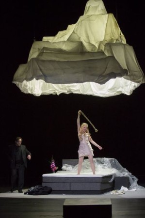 Auf einer risikoreichen Grenzlinie zwischen noch zulässiger Trauer und ungesundem Wahn bewegen sich die Handlungsträger ungelenk und furchtsam fort, immer in Gefahr, vom Strudel der Wahnvorstellungen Pauls in den Abgrund gestürzt zu werden. Sie ist schon in höchstem Maße obsessiv, die krankhaft-psychopathische Umachtung Pauls, die sich immer mehr steigert und im zweiten Akt bei der von Marietta und ihrem Team nachgespielten Nonnenauferstehung aus Meyerbeers „Robert, le diable“ in ein sämtliche Grenzen zur Realität sprengendes, stark surrealistisches Bild von hoher Eindringlichkeit mündet. Der jetzt von einer riesigen Glocke dominierte Raum verliert seine Konturen, und die nach wie vor verhüllten Möbel und Gegenstände sowie von Adriane Westerbarkeys geradezu zauberhaft eingekleidete Traumgestalten schweben behende durch die Luft. Die Grenze zur gesunden Trauerarbeit ist eindeutig überschritten und mündet in den Wahnsinn des Protagonisten. Marietta wird zunehmend zur Projektionsfläche seiner unstillbaren Sehnsucht nach der toten Marie. Feuerbach lässt grüßen. Dass Paul ihr keine eigene Identität zugesteht und in ihr immer nur die Reinkarnation seiner verstorbenen Frau sieht, ruft schließlich ihren Widerstand hervor. Dieser findet während der ebenfalls nur in Pauls krankem Hirn stattfindenden Prozession in einem Coitus per Os der Tänzerin, wie die Mediziner dieses von der Regisseurin bewusst als Provokation des tief religiösen Paul eingesetzten, nicht gerade appetitlichen Sexspielchen nennen, seinen krassen Höhepunkt. Hinter das Ende setzt Frau Klepper ein Fragezeichen. Die Heilung Pauls von seiner krankhaften Trauer bleibt bei ihr Utopie. Im letzten Bild ertönen sämtliche Stimmen aus dem Off, während ein Double Pauls einsam und stumm um den immer noch verhüllten Möbelturm streift. Der Alptraum des Protagonisten hat keinen Abschluss gefunden, sondern geht weiter.