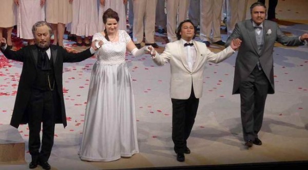 Beim dauernden Forcieren saß der junge Tenor James Lee als Arrigo am kürzesten Hebel. Zwar verfügt er über schönes, klares und helles Tenormaterial, musste sich aber im spinto sehr bemühen und wirkte doch teilweise noch eng. Gestik und Mimik sind bei ihm noch ausbaufähig. Er hat eine Stimme mit viel Potential, aber auch er powerte letztlich zu viel. Die musikalische Leitung hätte bei den Stimmen etwas mehr ausbalancieren können. – Alle Nebenrollen waren adäquat besetzt