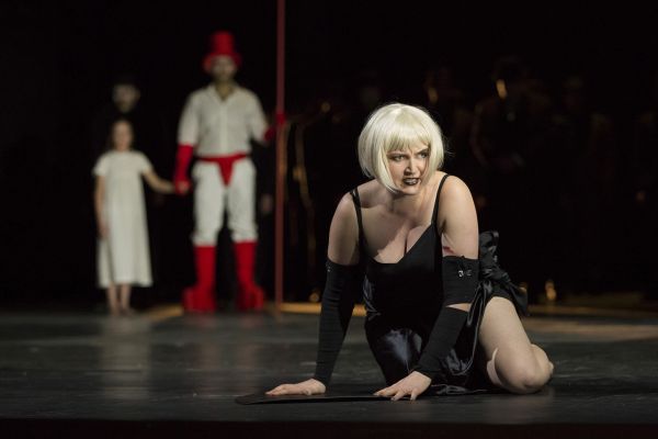 Diese Azucena war eine Wucht: Anja Jung verfügt über die perfekte Stimme für diese Rolle, welche wohl eine der dankbarsten und intensivsten aus Verdis Feder ist. Frau Jungs Rollengestaltung zeichnete sich durch eine dunkle Grundfarbe aus, sie vermochte die sie psychisch verzehrenden Gewissensbisse über den Mord am eigenen Kind und die in ihrer Seele drohend wuchernden Rachegedanken auf eindringliche Art und Weise zu akzentuieren. Töne die durch Mark und Bein gingen, loderten wie heisse Lava, sich gleissend vom Brustregister in die Höhe drehten und in ein entrücktes Piano wechseln konnten (Schlussbild Ai nostri monti). In ihrem Lager beschäftigte Azucena eine ganze Horde Kinder (mit blutigen Narben), welche in ihrem Auftrag mit blutroter Farbe Poster malen mussten, die sich mit Kindesmord und Hexenverbrennungen beschäftigten. Eine Art selbstauferlegter Psychotherapie? Die fünfte wichtige Person der Oper ist natürlich die Primadonna, Leonora, welche die von einander nichts wissenden Brüder als Rivalen um ihre Gunst in fataler Art aufeinander treffen lässt. Christina Vasileva sang die anspruchsvolle Partie mit einer fulminanten Selbstverständlichkeit. Sauber die Triller und kleinen Fiorituren, den grossen Tonumfang mühe- und bruchlos durchschreitend, von fortissimo Ausbrüchen wie durch Magie in tragfähige Piani zurückgleitend. Wunderbar! Selbstverständlich musste sie in platinblonder Pony Perücke und im kurzen Schwarzen auftreten.