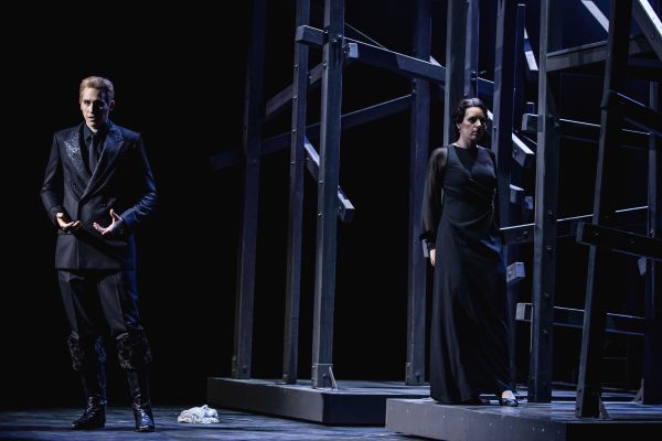Daran die Leistungen am Premierenabend zu messen, wäre ungerecht, aber das Ensemble hatte beachtlich hohes Niveau. Da ist zunächst die britische Sopranistin Robyn Allegra Parton als Amelia zu nennen. Sie stellte glaubhaft die unter den widrigen Umständen leidende Frau dar; dass sie zu Corrados Arien im Gerüst herum klettern musste, ist ihr nicht anzulasten. Sie führte ihren tragfähigen Sopran gut abgerundet durch alle Lagen und gefiel durch klare Koloraturgeläufigkeit sowie sichere Höhen; besonders gelungen waren die schön ausgesungenen Lyrismen im 3.Akt. Ihr „Gegenspieler“ Corrado war bei dem US-Amerikaner Zachary Bruce Wilson gut aufgehoben; in seiner Darstellung war Corrado weniger schurkischer Bösewicht als heftig unter Amelias Ablehnung leidender Mann. Der Sänger verfügt über einen markanten Bariton, den er schön auf Linie führte, der in den nicht wenigen Koloraturen sicher war und der durchgehend mit starkem Ausdruck imponierte. Für den jungen Koreaner Yohan Kim war es nun alles andere als leicht, mit der technisch schwierigsten Partie der Oper fertig zu werden; er sang zu eindimensional, indem er bei durchgehender Lautstärke kaum differenzierte. Da die extremen Höhen meist gelangen, teilweise aber nur mit merkwürdiger Kopfstimme, muss man leider feststellen, dass er sich hörbar angestrengt durch seine Partie kämpfte.
