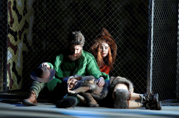 Zauberhaft die Besetzung des Fuchspaares. Dorothea Brandt bietet einen hellen, melodisch strömenden Sopran, den Jennifer Panara mit ihrem herben Timbre wirkungsvoll kontrastiert. Den leicht knorrigen Bariton des wie immer enorm bühnenpräsenten Kenneth Mattice kann man als durchaus rollenkonform empfinden, Olaf Haye (Háraschta) wirkte zumindest am Premierenabend leicht angestrengt. Bei den Nebenfiguren führt Boris Leisenheimer mit seinem bestens typisierten und tenorklar gesungenen Schulmeister. Markante Porträts kommen aber auch von Kristine Larissa Funkhauser (Försterin/Eule), Marilyn Bennett (Dackel/Specht), Veronika Haller (Hahn/Gastwirtin) und Rainer Zaun (Pfarrer/Dachs). Chor und Kinderchor des Theaters (Wolfgang Müller-Salow, Caroline Piffka) sind mit spürbarem Eifer dabei.