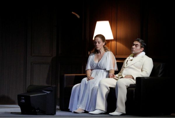 Der Schlußakt ist an den Anfang vorgezogen, was nur wenig bringt. Vor Boccanegras Begegnung mit seiner verloren geglaubten Tochter fällt der Pausenvorhang. Und diese Szene ist ein besonderer Tiefpunkt in der Inszenierung, müssen beide Sänger doch harmlos durch einen steif herum stehenden Chor tändeln. Dieser hat auch sonst meist nur stupide Auf- und Abtritte. Man wird beim Zusehen zunehmend aggressiv.