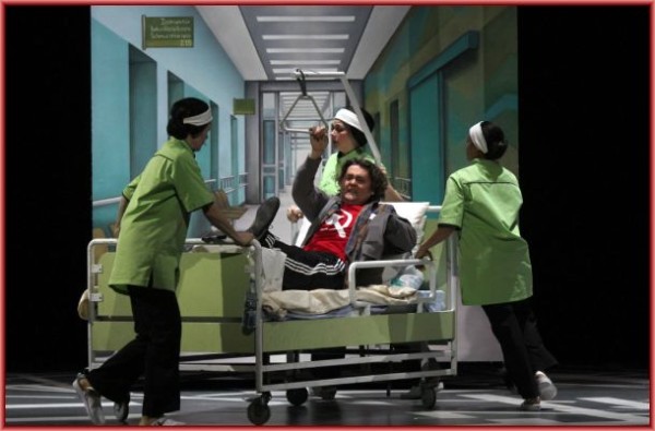 Nun, ganz so leuchtend positiv muss man das Leben freilich nicht sehen. Kriminalstatistiken, Drogenszene u.a. sind – jedenfalls in der Oper – als Zeitprobleme ausgeblendet. Der Zuschauer erlebt also kein ungeschminktes Abbild von Realität. Geschilderte Fatalitäten beschränken sich auf die einander entfremdeten Eltern von Maik, wobei Ähnliches bei Sia zu vermuten steht, die sich nicht von ungefähr auf eine Mülldeponie zurückgezogen hat, wo sie von den Jungs aufgegabelt und als „Dritte im Bunde“ mitgenommen wird. Dann gibt es noch einen gewissen Horst Fricke, welcher in offenbar leicht delirischem Zustand und mit Flinte bewaffnet irgendwo im Freien und mit Erinnerungen an KZ und Ostfront haust. Kritisches wird also nicht mit Paukenschlägen verabreicht. Sogar das finale Gerichtsurteil über die Ausreißer (Tschick kommt in ein Heim, Maik muss Sozialdienste leisten – Wiedersehen nicht ausgeschlossen) wirkt milde. Ohnehin befindet Maik: „Das war der schönste Sommer meines Lebens.“ Dieses Erleben kann ihm keiner nehmen. In Hagen baumelt er zuletzt gemeinsam mit Isa und Tschick in der Luft. Dieses Bild vermittelt ein schönes Freiheitsgefühl. Es entflammt sogar Maiks trinkfreudige Mutter, welche sich radikal von Zivilisationsgerümpel befreit und dieses in ihren Swimmingpool schmeißt. Im Roman taucht sie mit ihrem Sohn selber dort unter, hält die Luft an und belächelt die verdutzten Polizisten am Rande des Beckens.