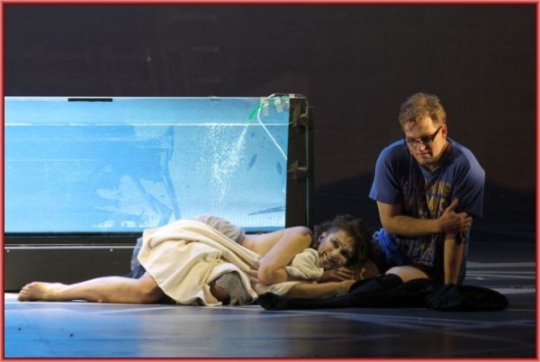 Für die Besetzung der beiden männlichen Protagonisten, im Roman Jungs von etwa 14 Jahren, hatte Vollmer eine pragmatische Entscheidung zu treffen. Hosenrollen kamen aus guten Gründen nicht infrage. Der Komponist entschied sich also ganz kontrovers für Baritonstimmen. Das macht, wie auch die Physiognomien von Andrew Finden (Maik) und Karl Huml (Tschick, a.G.) eine Identifizierung mit den dargestellten Figuren zunächst etwas problematisch. Natürliches vokales Agieren und lebendige Darstellung besiegen anfängliche Skepsis aber schon sehr bald. Kristina Larissa Funkhausers Isa ist ein rundum glaubhafter Charakter. Mutig und ohne Peinlichkeit wagt sie sogar eine oben-ohne-Szene.