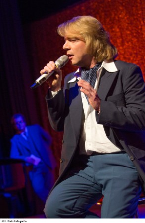 Vielleicht haben sie auch geahnt, dass der Schlussapplaus der Hitparade länger ist als der gesamte aller Vorstellungen von, na sagen wir: einer Produktion wie der „Usher“-Oper von Philip Glass. Ist schon okay – denn am Abend geht’s RICHTIG ab. Will sagen: Es macht wirklich Spaß, an diesem Abend zum Publikum zu gehören, mitzujohlen, mitzuklatschen, zu schunkeln und zu singen. Kein Wunder, dass diese Produktion, konkret: die 8. Vorstellung seit der Premiere, ein paar Fans hat, die offensichtlich jedes Mal ins Haus kommen und „ihren“ Stars am Bühnenrand Rosen überreichen. Aber überreichen sie sie Rex Gildo oder Oliver Hildebrandt ? Verteilt Udo Jürgens die Küsschen oder Karsten Jesgarz ? Springt Nena über die Bühne oder Julia Leinweber ? Kreischt Nina Hagen ihr Farbfilm-Lied oder Anja Stange ? Bekommt Howard Carpendale die Liebe seiner weiblichen Fans geschenkt oder