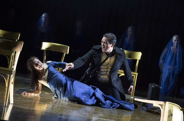 Man hat sich in Hof für Cherubinis originale Dialogversion entschieden, Krause hat allerdings die Originaltexte gestrichen und Ersatz unter anderem bei Euripides oder Grillparzer gefunden. Und auch wenn ich persönlich kein Fan von gesprochenen Dialogen im Musiktheater bin, weil sie den Musikfluss unterbrechen, mitunter in die Musik hineinreichen und Opernsänger oft einfach keine Sprechschauspieler sind, ist dies in Hof außerordentlich gut und bei klarster Textverständlichkeit gelungen. Das liegt sicher auch daran, dass man in Susanne Serfling als Medea eine Idealinterpretin gefunden hat, die nicht nur über enorme stimmliche Mittel, sondern auch ein ausgeprägtes schauspielerisches Talent verfügt. So zwingend sie den Zuschauer mit ihren Ausbrüchen mit in die Verzweiflung ihrer Figur reißt, so berührend ihre Piani über den Graben strömen, so packend ist ihre Darstellung, die sie mit dem ganzen Körper regelrecht zelebriert. Die gesprochen Texte rezitiert sie mit enormer Intensität und, dass sie die Medea gestern überhaupt zum ersten Mal auf der Bühne gestaltet, mag man kaum glauben, so überzeugend personifiziert sie die desillusionierte Frau, die nicht nur aus Rache zur Mörderin wird.