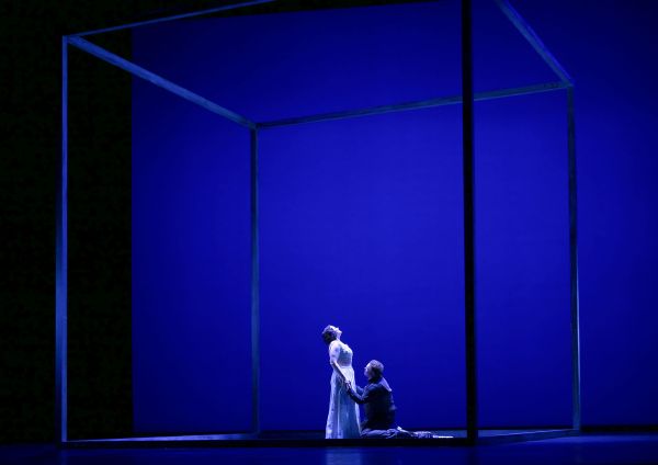Für das Bühnenbild hat er mit der renommierten japanischen Künstlerin Chiharu Shiota eine für ihre Wollfadentechnik bekannte Gestalterin an den Kleinen Kiel geholt. Die bietet in den ersten beiden ersten Akten eine minimalistische Ausstattung, die sich im dritten Akt zu reizvollen Fadengeflechten steigert. Immer neue Scheiben mit den Geknüpften einer Klasse der Muthesius-Hochschule sinken auf die Bühne herab und engen die Möglichkeiten der Darsteller ein. Sehr eindrucksvoll! Für die Kostüme zeichnet einmal mehr Claudia Spielmann verantwortlich.