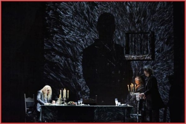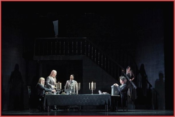 Von Anfang an ist dem Leser wie dem Besucher der packenden Inszenierung von Waltraud Lehner klar, dass die Geschichte keinen guten Ausgang wird nehmen können. Die immer wiederkehrenden Motivfetzen ziehen den Zuhörer in ihren Bann, versetzen ihn in einen Zustand, der zwischen Meditation und Nervosität angesiedelt ist. Dies spiegelt Lehner in ihrer Lesart des Stoffes und wird dabei von genialen Videoeinspielungen unterstützt, für die Georg Lendorff verantwortlich zeichnet. Sie schaffen eine zusätzliche Ebene, visualisieren Gefühle, Ängste und Gedanken der Protagonisten, die sich irgendwo zwischen Wahnsinn und Alptraum gefangen sehen. Die Drehbühne setzt der Monotonie, die aus dem Graben zu tönen scheint, Bewegung entgegen, die verschiedenen Räume des Hauses, auf deren Wände dann auch besagte Videos zu sehen sind, scheinen zu leben, auch wenn die komplette Szenerie, die an einen Gruselstummfilm der 1920er Jahre erinnert, dunkel gehalten ist (Bühne: Ulrich Frommhold). Das gilt auch für die Kostüme, die an die Entstehungszeit des Romans angelehnt sind und die – von Katherina Kopp entworfen – durch die Bank gelungen sind, sieht man über die unsägliche Perücke hinweg, die die Figur des William tragen muss. Das nur rund 80 Minuten dauernde Werk läuft kontinuierlich auf die sich diffus ankündigende Katastrophe zu und bis zum Schluss bleibt der Zuschauer im Unklaren darüber, ob er da gerade einfach einen Alptraum, eine Wahnvorstellung eines Wahnsinnigen oder eine tatsächliche Begebenheit gesehen hat. Insofern hat das Regieteam um die Münchener Regisseurin den Faden von Poe und Glass nicht nur aufgenommen, sondern äußerst gelungen weiter gesponnen.