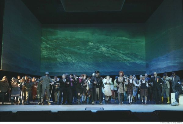 Die Personenführung Hovenbitzers, der die Geschichte Peter Grimes als die eines Außenseiters zeichnet, gelingt nämlich sehr eindringlich und spannungsvoll. Dazu macht der geschlossene Bühnenraum von Roy Spahn alle Figuren zu Gefangenen einer unbarmherzigen Gesellschaft. Gleichzeitig gelingen beeindruckende Videoeinspielungen, die das Stück wieder ans Meer holen.