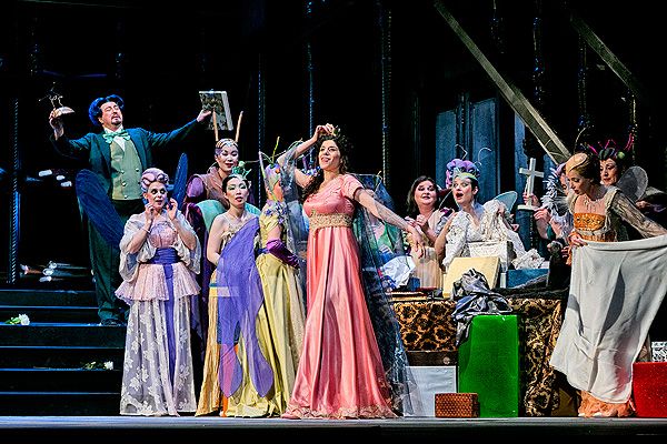 So wird der Zwerg des Wildeschen Märchens ebenso zum Doppelgänger Zemlinskys, wie die verwöhnte Infantin, der er zum Geburtstag geschenkt wird zum Spiegelbild Almas; das Bühnenbild des Künstlerheims des Ausstatters Roy Spahn übergangslos zum prunkvollen Palast, die opulente Düsternis läßt sich im zweiten Werk ebenso für den florentinischen Palazzo gebrauchen. In der ersten Oper erliegt Krieger etwas zu sehr der ausgiebigen Feier der Infantin, die bunten Insektenroben sollen wohl an einen Kindergeburtstag mit Verkleiden denken lassen, was optisch zwar etwas hermacht, doch auch recht "operettig" wirkt. Weniger von allem ,auch was die Statisten betrifft, wäre da mehr gewesen. Doch das Stück liegt vorwiegend in der Hand der durchweg trefflichen Darsteller. Noa Danon spielt lebhaft die Infantin Donna Clara, da sie indisponiert ist, gestaltet von der Seite ein Sopran, deren Namen ich mir leider nicht im Eifer des Gefechts aufgeschrieben habe, dafür Asche auf mein Haupt. (Anmerkung Redaktion: Sarah Hershkowitz).