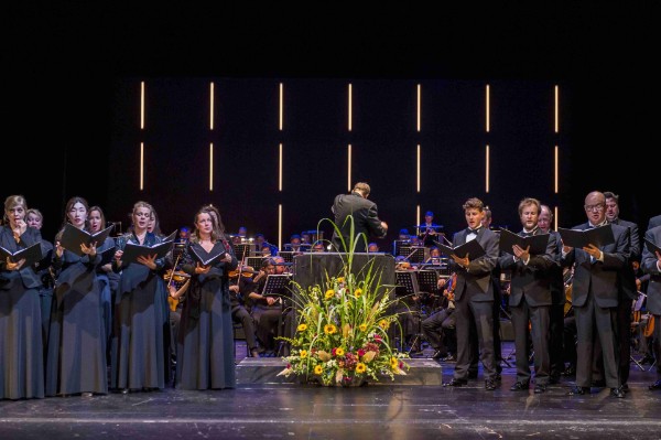 Man hat von Theaterseite viel verschieben oder gar absagen müssen und hofft als Zuschauer, daß Produktionen, auf die man sich so sehr gefreut hat, im nächsten Jahr doch noch auf die Lübecker Bretter gebracht werden. Noch liegt das im Dunkeln und so begann auch der Gala-Abend tatsächlich mit dunkler Bühne. Als hätte GMD Stefan Vladar mit dem Verzicht auf den Begrüßungsapplaus ein Zeichen setzen wollen, daß es hier, um mal wieder mit Wagner zu sprechen, der Kunst gilt, schritt er bei schwachem Dämmerlicht ans Dirigentenpult. Aus der Dunkelheit ersteht der Morgen und den gab es mit dem wunderbaren 4. Lied aus den Orchesterliedern Op. 27 von Richard Strauss, gesungen von Gastsopranistin Bea Robein.