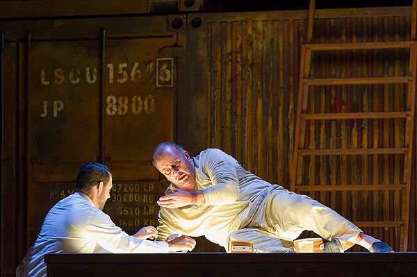 Im Prigioniero öffnet sich der Vorhang für eine von verrosteten Schiffscontainern verstellte Szenerie, die dem geneigten Zuschauer auch im Bühnenbild Angelicas wieder begegnen soll. Die in Zwölftonmusik gefasste und in der Hinrichtung durch den Strick mündende Erzählung stellt insbesondere im Zusammenhang mit der abstrakten Interpretation des ersten Einakters schwer verdauliche Kost für das Publikum dar. Dies drückt sich auch im betreten wirkenden Zwischenapplaus vor der Pause aus, welcher die sängerisch und darstellerisch herausragende Leistung des Hausbaritons dennoch gebührend zu würdigen weiß.