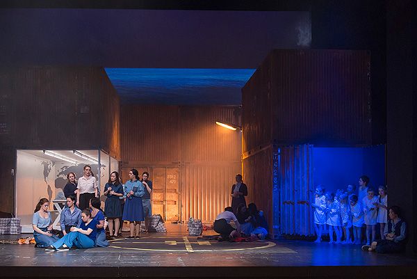 Suor Angelica verortet sich zwar ebenfalls inmitten jener aus dem ersten Teil bekannten Schiffscontainer, das Bühnengeschehen spielt nun jedoch auf einem Flüchtlingsschiff, wie die Meeresprojektion im Hintergrund verheißt. Realismus in der Ausstattung und detailreicher Naturalismus im Spiel prägen eine Ganzheitlichkeit im Konzept Suor Angelicas.