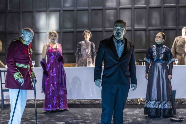 Der Bariton Johan Hyunbong Choi singt und spielt sowohl den Kampf mit seinem Gewissen als auch die neugewonnene langgereifte Überzeugung absolut glaubhaft; niemand kann ihn dazu bringen, wieder zur Waffe zu greifen. Weder vermag dies sein Ausbilder Spencer Coyle, dessen militärische Zackigkeit der Bariton Gerard Quinn ebenso glaubhaft vermittelt wie sein Verständnis für die Kursänderung seines Untergebenen, noch kann es die Familie mit ihrer jahrhundertealten militärischen Tradition. Die bildet einen eigenen Kriegsschauplatz, denn sowohl der Großvater, der General Sir Philip Wingrave (man wünscht sich, daß sich der Tenor Wolfgang Schwaninger als Militärparodie wie Loriots Opa Hoppenstedt entpuppt, aber der verhärtete Greis ist vom Kriegführen besessen) als auch die Damen des Hauses sind in ihrer nationalistischen und familientraditionalistischen Haltung die erbitterten Gegner des Neu-Pazifisten Owen. Ob seine keifende Tante (Sopranistin Sabina Martin mit entsprechender Schärfe), seine Schwiegermutter in spe, Mrs. Julian (Sopranistin Andrea Stadel macht die Zwanghaftigkeit und Unsicherheit der Figur ahnbar), oder vor allem seine Verlobte Kate – alle wenden sich gegen ihn. Die Mezzosopranistin Wioletta Hebrowska gibt eine beängstigend von sich und ihrer Mission überzeugte junge Frau, der man abnimmt, über Leichen zu gehen.