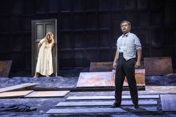 Die Inszenierung versetzt das Stück aus dem spätviktorianischen Zeitalter – Libretto-Vorlage ist eine Kurzgeschichte von Henry James aus dem Jahre 1893 – in den Ersten Weltkrieg. Bereits das erste Bild (möglicherweise eine Vision des Protagonisten) entkleidet die Ausbildung an der Waffe als sadistische Quälerei, denn die vermeintlichen Pappkameraden, auf die die Rekruten mit ihren Bajonetten in einer Gefechtsübung einstechen, sind in Wahrheit gefangene deutsche Soldaten, die reglos vom Schnürboden hängen. Während sein Freund und Kamerad Lechmere (ein überzeugend skrupelloser Yoonki Baek mit scharfem Tenor) genüßlich sein Bajonett in dem leblosen Körper dreht, weicht der Titelheld vor der Gewalttat zurück, worauf das durch die Angriffe der vorigen Soldaten längst tote Opfer seine Hände flehend zu ihm erhebt. Ob aus Grauen vor der gespenstischen Geste oder aus Hilflosigkeit in der peinigenden Situation – Owen sticht schließlich doch auf die Gestalt ein, die dann endgültig in die Schlaffheit einer Leiche verfällt.