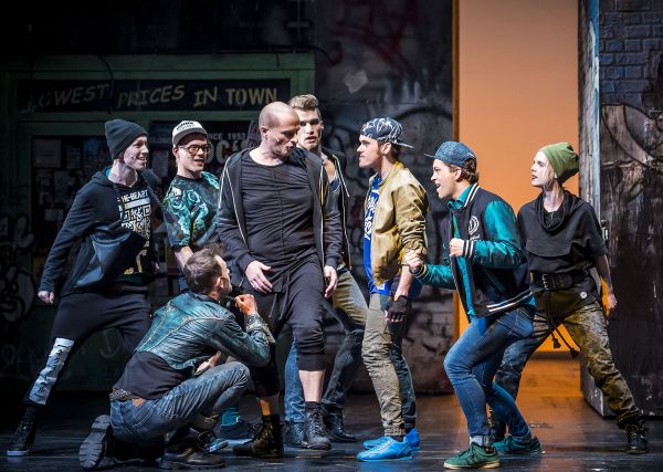 Das Theater Lübeck, ein Mehrspartenhaus im besten Sinne des Wortes, zeigt nicht nur erstklassige Opernproduktionen, zumal von Werken Richard Wagners und Richard Strauss‘, sondern konnte an diesem Abend mit der Produktion der „West Side Story“ von Leonhard Bernstein nach einer Idee von Jerome Robbins und dem Buch von Arthur Laurents sowie den Gesangstexten von Stephen Sondheim unter Beweis stellen, dass ihm auch die Kunstgattung Musical gut liegt. Man erlebte eine unglaublich farbige, vielseitige und dynamische Inszenierung von Wolf Widder in den Bühnenbildern und Kostümen von Katja Lebelt und einer Choreografie von Kati Heidebrecht. Sie konnte mit den Jazz-Tänzen und Straßenschlachten mit großer Phantasie und Gefühl für das Innenleben der Mitglieder beider Gangs, der „Jets“ aus New York und der „Sharks“ aus Puerto Rico, ein hohes Maß an Emotion und Authentizität in das Geschehen auf der Bühne einbringen.