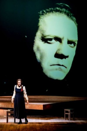 Als die durch die Magdeburgische Philharmonie fulminant und zugleich differenziert präsentierte Ouvertüre (endlich einmal ohne szenische Bebilderung!) erklungen war, blickte man auf einen an das Innere eines Schiffes erinnernden Raum in rostbrauner Färbung und ohne Mobiliar (Ausstattung: Tom Musch). Die Regisseurin Vera Nemirova hatte den Stoff um den rastlosen Holländer aktualisiert. Er war keine menschenferne Geistererscheinung, sondern wie Daland Kapitän eines Handelsschiffes; die Matrosen und die nähenden Frauen trugen moderne Alltagskleidung; Senta starrt das Foto des Holländers natürlich auf einem Smartphone an. Nach den Worten der Regisseurin „ist das Los des Holländers und seiner Mannschaft eine Metapher für Ortlosigkeit, für Getriebensein und Herumirren, für die Suche nach Heimat in einem fremden Land oder vielleicht bei einem Menschen“. Da diese Suche nach Heimat scheitert, ist es nur konsequent, dass es den so genannten „Erlösungsschluss“ nicht gab und der erlöste (?) Holländer von Erik erschossen wird. Die Rastlosigkeit des Holländers wurde auch dadurch deutlich gemacht, dass bei seinem Monolog und am Schluss, als er seine Identität offenbart, endlos erscheinende Video-Einspielungen (Bahadir Hamdemir) von nächtlichen Fahrten auf einem Highway zu sehen waren. Weitere Videos von sturmbewegten Wolken und hauptsächlich vom Gesicht des teilweise hinter der Bühne singenden Holländers fügten sich fast durchgehend passend in den dramatischen Ablauf ein; sein erstes Gespräch mit Daland wirkte dadurch allerdings viel zu irreal.