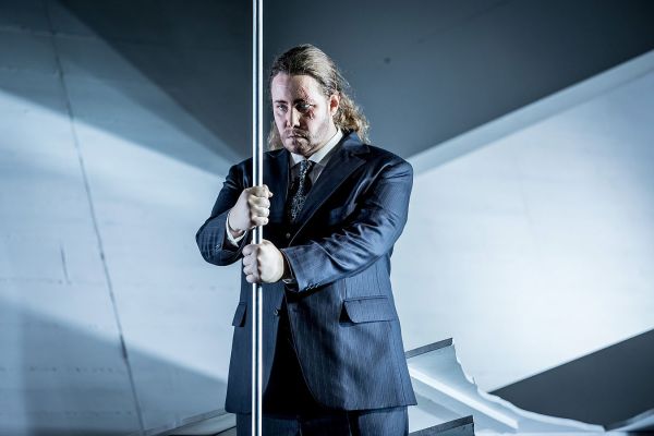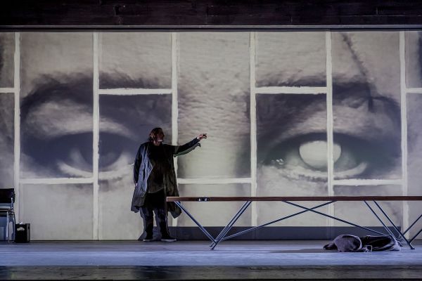 Beim Monolog darauf blickt ein riesiges Gesicht – jenes Wotans – mit blindem Auge wie er kontrollierend auf die Szene. Also, er ist in der Tat im Gespräch mit sich selbst und erkennt bald sein eigenes Versagen. Bei seinem „Auf geb‘ ich mein Werk; nur Eines will ich noch: das Ende – –, das Ende! –“ verfließen die Konturen – Wotan endet auch optisch. Ein interessanter Einfall des Regisseurs. Wotan scheitert hier nicht am Dialog mit Fricka, nein, er scheitert nach eigener Erkenntnis im Dialog mit Brünnhilde an sich selbst. Lucia Lucas kann hier zeigen, was ihr technisch perfekt geführter Bassbariton vermag. Er ist heller eingefärbt als bei einer männlichen Stimme, besitzt aber bei großer Wortdeutlichkeit sehr hohe Ausdruckskraft, die gerade bei Lucas auch immer mit einer beeindruckend auf die jeweilige Situation abgestimmten Mimik einhergeht. Natürlich gelingen Höhen wie „…gierig hielt ich das Gold!“ mühelos und gar glänzend. Aber auch im tieferen Register spricht die Stimme gut an. Ohne Probleme überstrahlt sie das Orchester, auch wenn GMD Kimbo Ishii gelegentlich etwas zu stark aufträgt. Ebenso dramatisch wie erschütternd inszeniert Peters-Messer schließlich den Kampf zwischen Siegmund und Hunding. Auf offener Bühne – und nicht peinlich versteckt zwischen Baum-Stangen im Hintergrund wie in der Bechtolf-Inszenierung in Wien – findet er statt. Sowohl Brünnhilde als auch Wotan treten klar sichtbar auf. Ist Siegmund tödlich von Hunding getroffen, versucht er mit letzter Kraft und wutverzerrtem Gesicht nochmals auf ihn loszugehen, wird aber vom eigenen Vater zu Boden gedrückt – bis er stirbt. Das war schon großes Musiktheater! In Magdeburg und nicht in Wien.